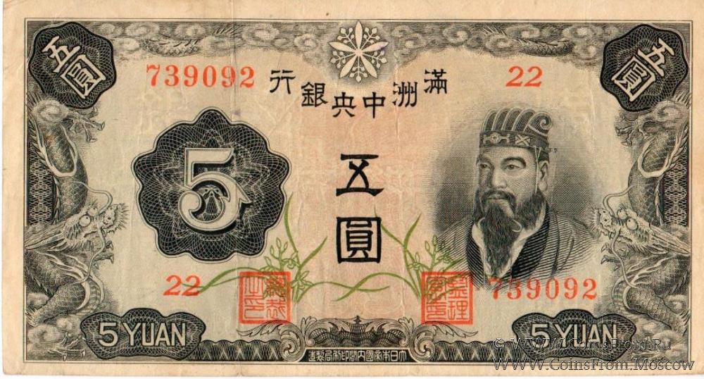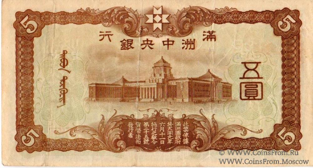 Выпуск 1937-1938 гг. Номер 6-значный. Центральный банк Маньчжоу-го (Central Bank of Manchukuo / 滿洲中央銀行).