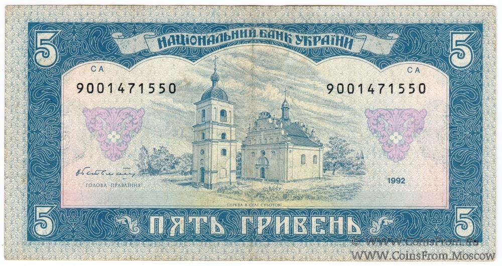 5 гривен 1992 г. "Замещёнка"