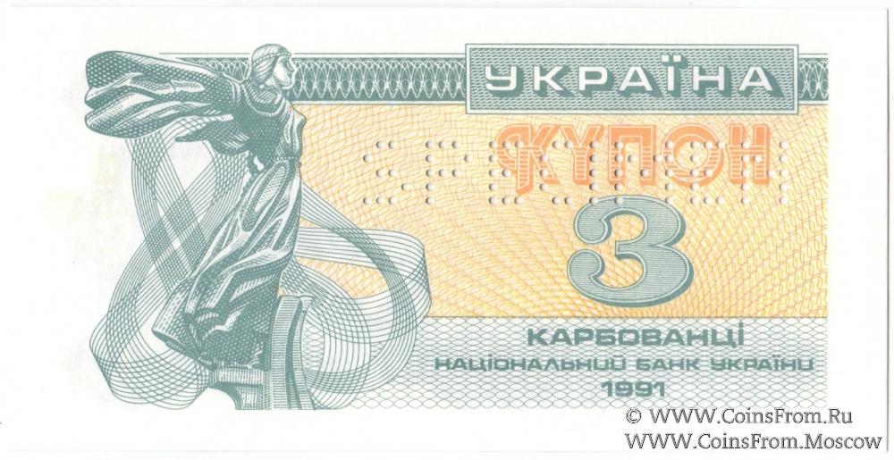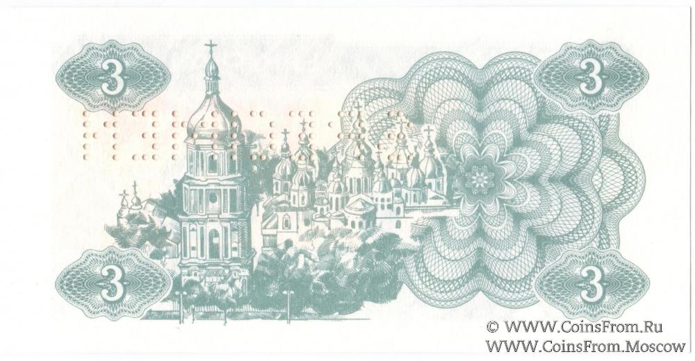 3 карбованца 1991 г. ОБРАЗЕЦ (SPECIMEN)