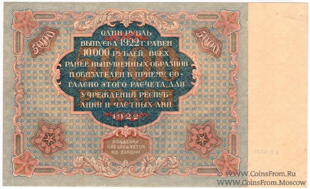 Государственный денежный знак РСФСР 5.000 рублей образца 1922 г.