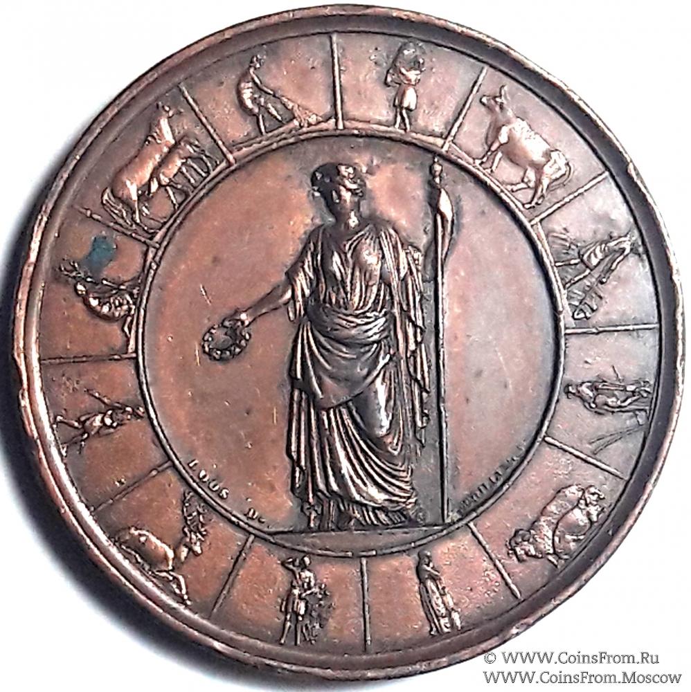 Аверс: По краю широкое кольцо, разделенное на 12 полей. В 12 полях изображены различные сельскохозяйственные угодья.