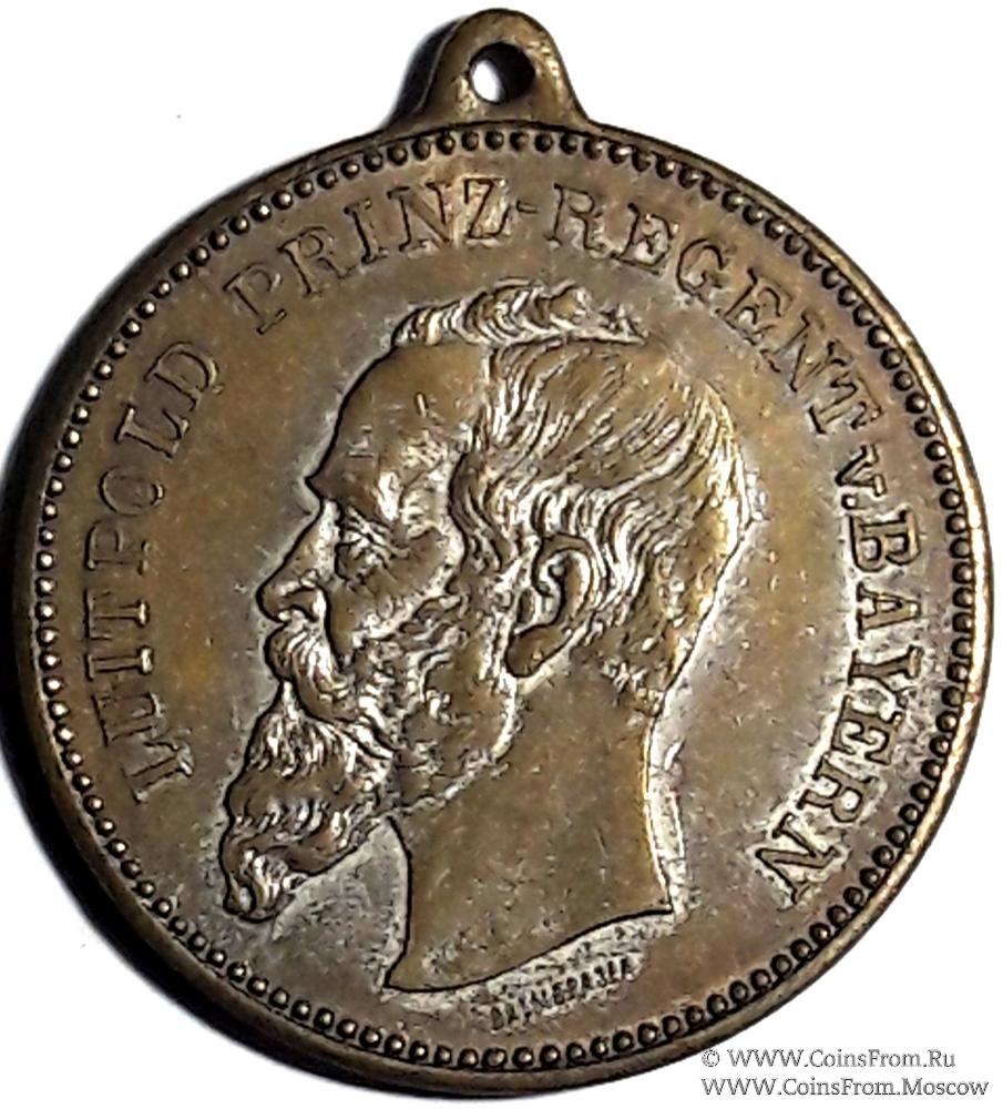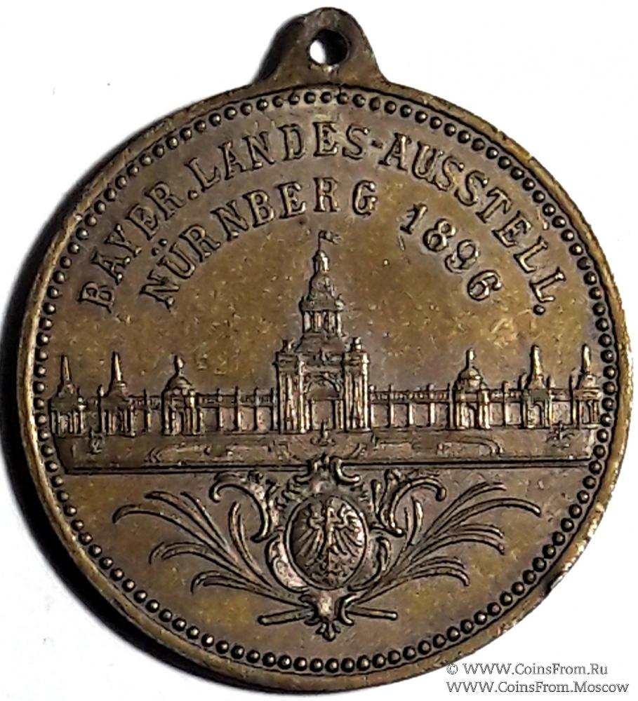 Реверс: надпись "Баварцы. выставка земли Нюрнберг 1896", изображение здания баварской индустриальной выставки Ю. Кунста