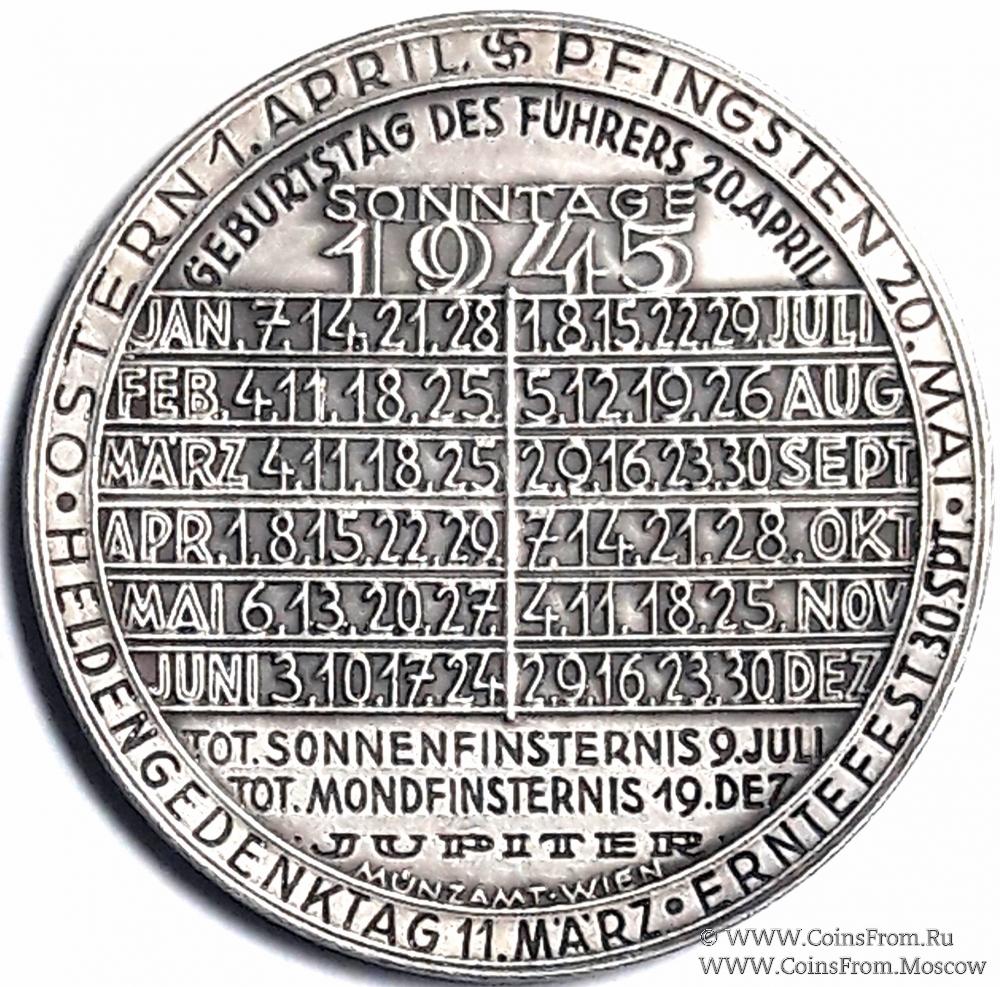 Памятная медаль 1945 г. "Памятные даты". Германия. Диаметр 40 мм. Вес 21,9 г.