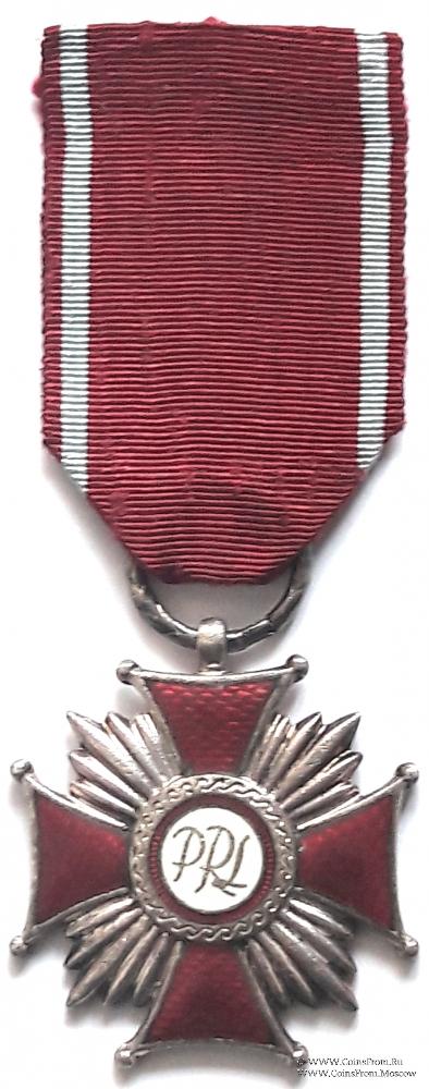 Орден Крест "За Заслуги" "серебряной" степени. Польская Народная Республика. Крест За Заслуги был впервые учрежден распоряжением Президента (Второй Речи Посполитой) от 23 июля 1923 года. 22 декабря 1944 года декретом Польского Комитета Освобождения"...с целью поощрения выдающихся заслуг, способствующих славе и пользе Народной Польши" Крест Заслуги был учреждён вторично. Награждение Крестом Заслуги производилось: за высокие производственные достижения; за плодотворную общественную деятельность. за высокие достижения в науке и медицине, литературе и искусстве, спорте. Крестом Заслуги награждались многодетные матери и доноры. В каждом классе награждение могло быть произведено до четырех раз. С 1960 года было внесено изменение в порядок награждения Крестом . Так Золотым и Серебряным Крестом награждение могло быть произведено дважды, Бронзовым Крестом – один раз. При повторном награждении вручался очередной знак отличия и Диплом. Крестом Змогли быть награждены как отдельные граждане, так и трудовые коллективы, предприятия, учреждения, а также города и воеводства. За заслуги перед Польской Народной Республикой Крестом могли быть награждены как польские, так и иностранные граждане. Право награждения Крестом принадлежало Президенту Польской Народной Республики.