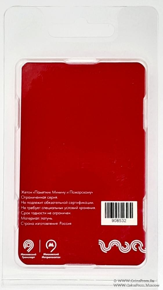 Жетон "Памятник Минину и Пожарскому", ограниченная серия. Московский транспорт. Московский метрополитен. Жетон. Латунь. Размер: 32,6 мм х 2 мм.