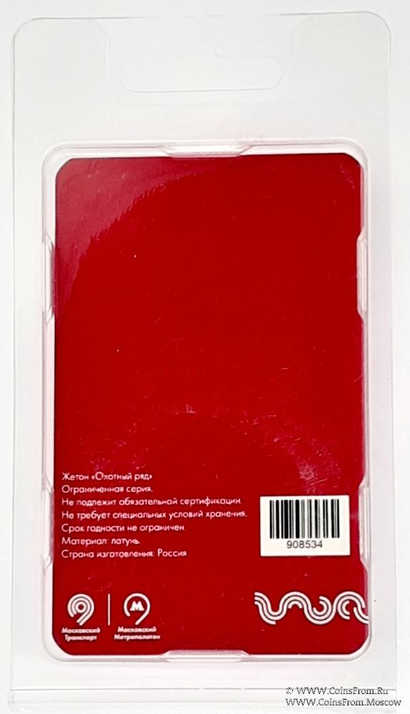 Жетон "Охотный ряд", ограниченная серия. Московский транспорт. Московский метрополитен. Жетон. Латунь. Размер: 32,6 мм х 2 мм.