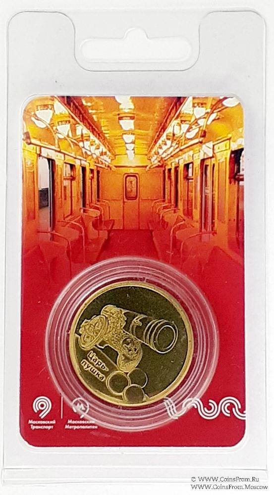 Жетон "Царь-пушка", ограниченная серия. Московский транспорт. Московский метрополитен. Жетон. Латунь. Размер: 32,6 мм х 2 мм.