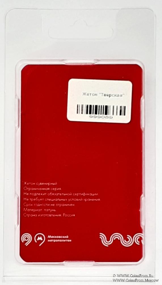 Жетон "Тверская", ограниченная серия. Московский транспорт. Московский метрополитен. Жетон. Латунь. Размер: 32,6 мм х 2 мм.