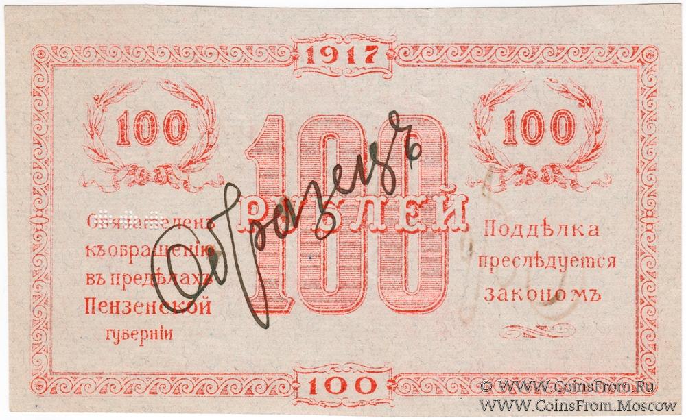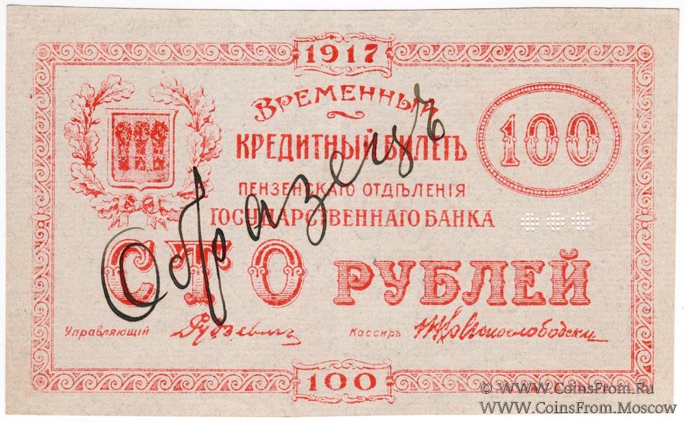 ОБРАЗЕЦ двусторонний: диагональная надпись чёрного цвета "Образецъ" на аверсе и реверсе. Перфорация (***). Бумага верже. Пензенское Отделение Государственного Банка.