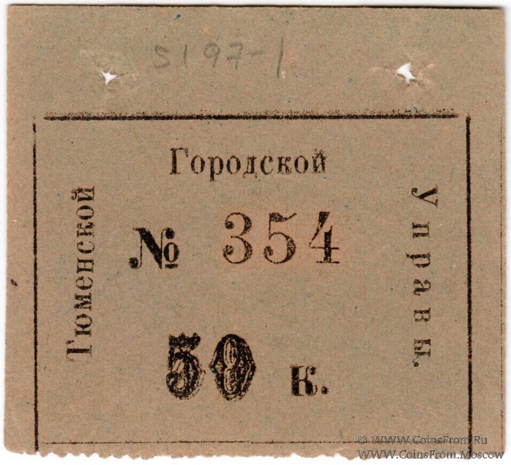 Без даты (1918 г.). Цифры номинала фигурные. Тюменская Городская Управа.