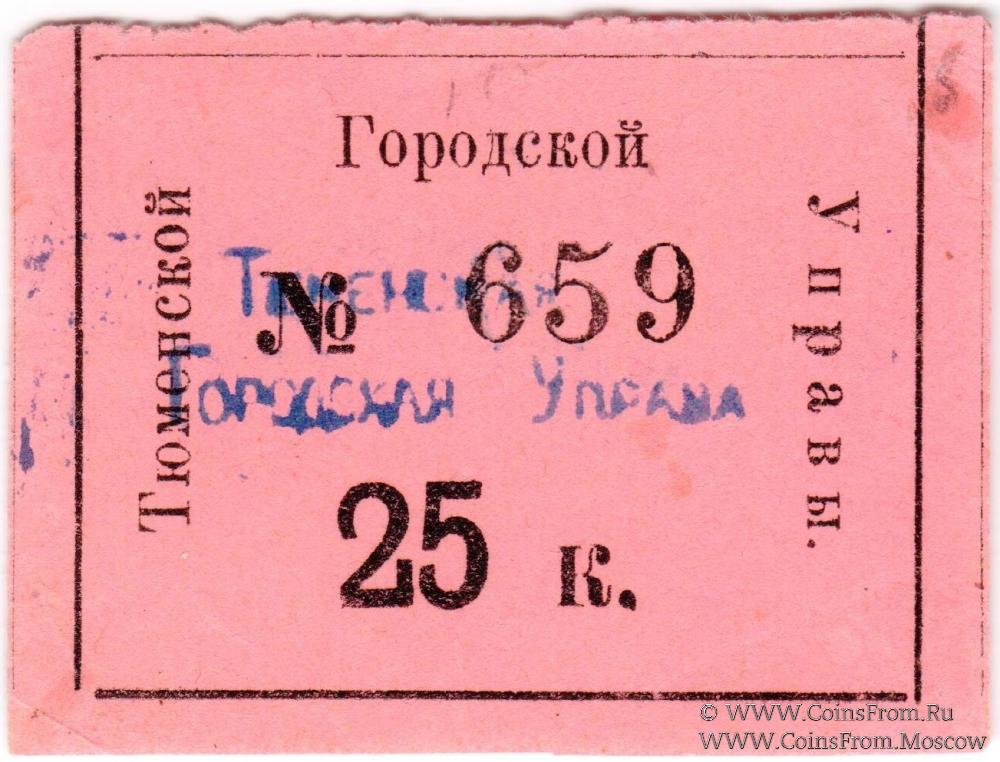 Без даты (1918 г.). Цифры номинала прямые и широкие. Штамп Управы. Тюменская Городская Управа.