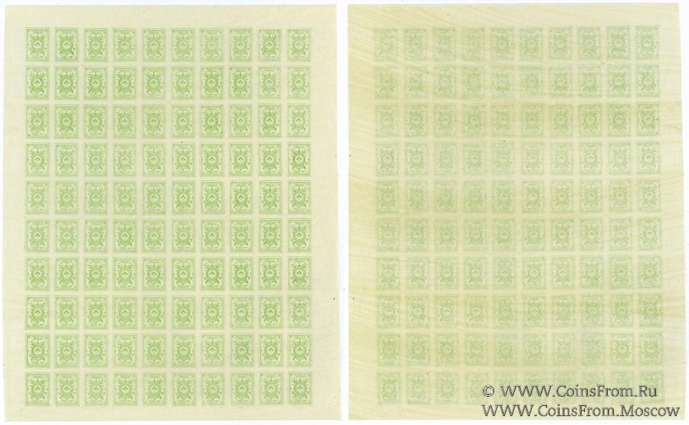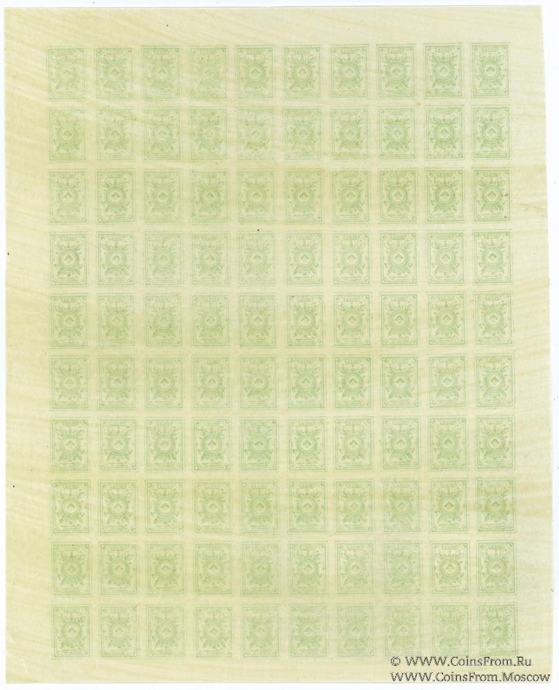 Почтовая марка ОКСА. Полный лист 100 шт. Аверс отдельно. Зелёная.