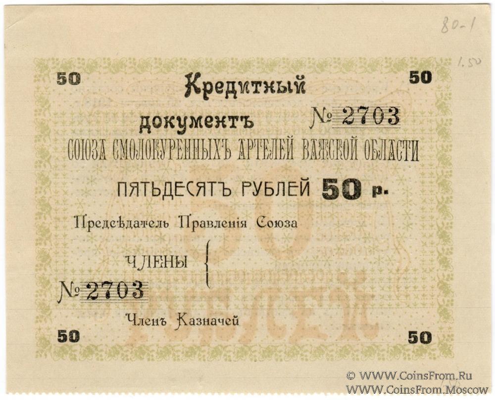 Кредитный документ 1918г. Союз смолокуренных артелей Важской области.