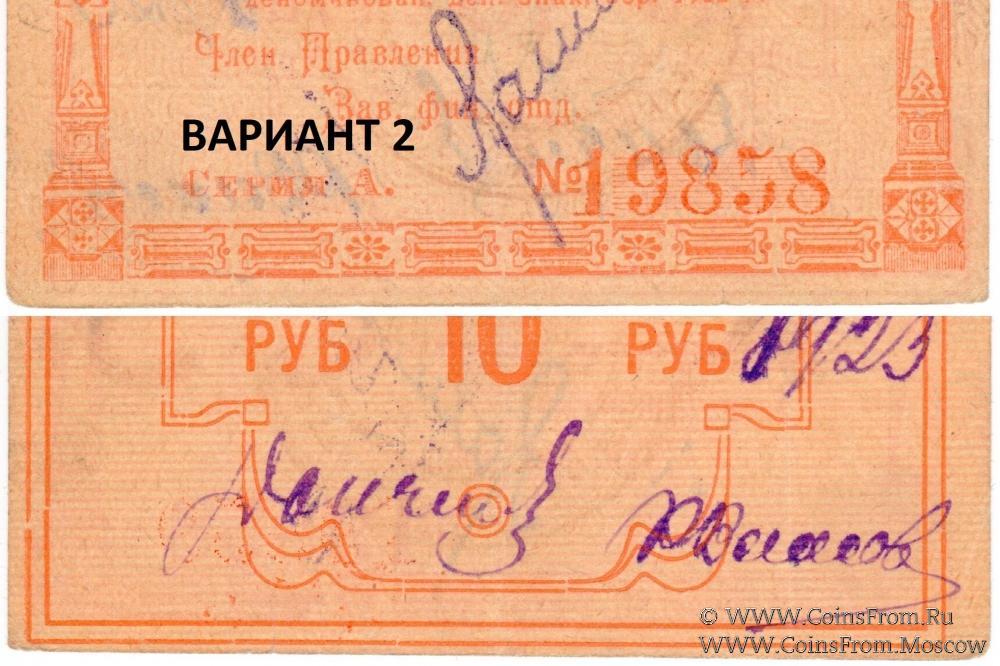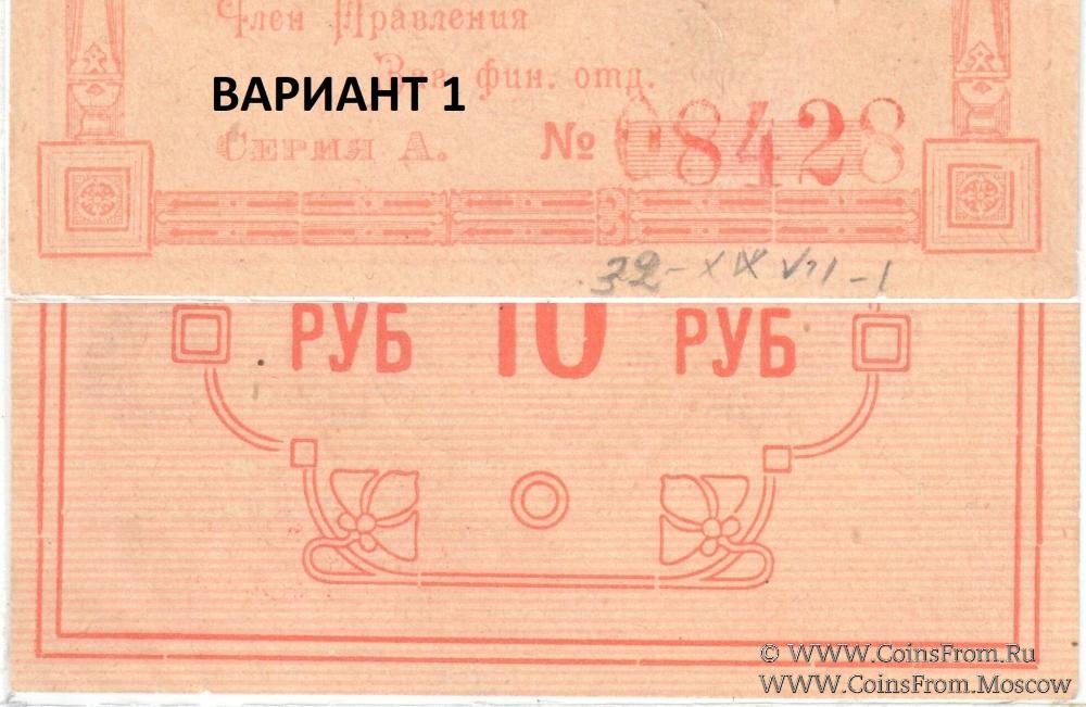 Варианты рамок расчетной марки 1922-1923 гг. разных номиналов (на примере 10 рублей). Енисейский Губернский Союз Кооперативов.