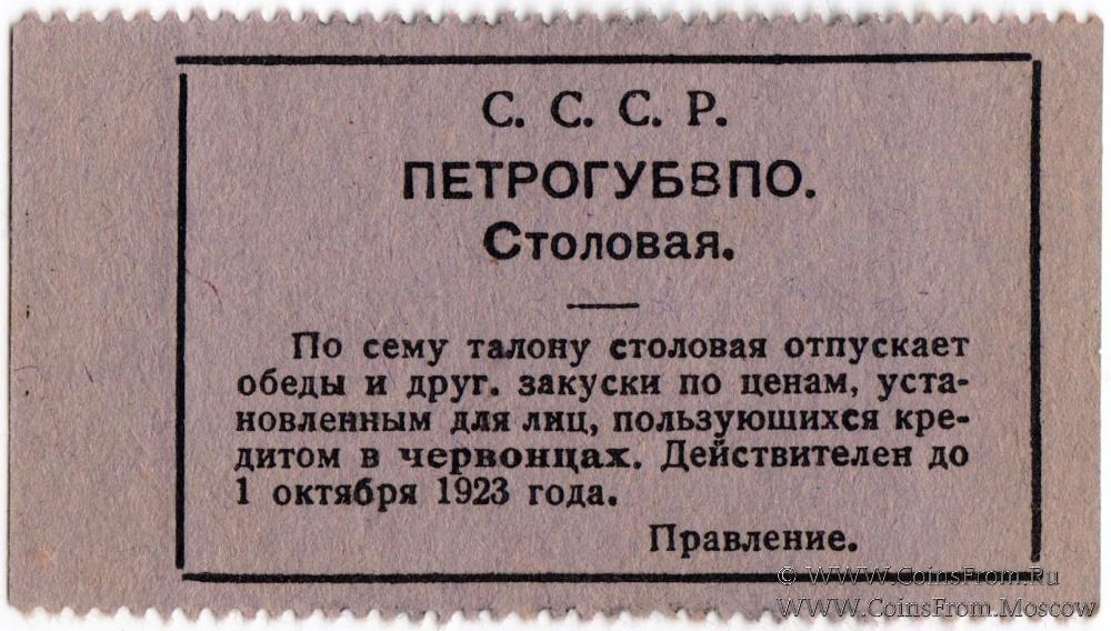 Талон (в червонцах, действителен до 1 октября 1923 г.). Бланк. Фиолетовый.