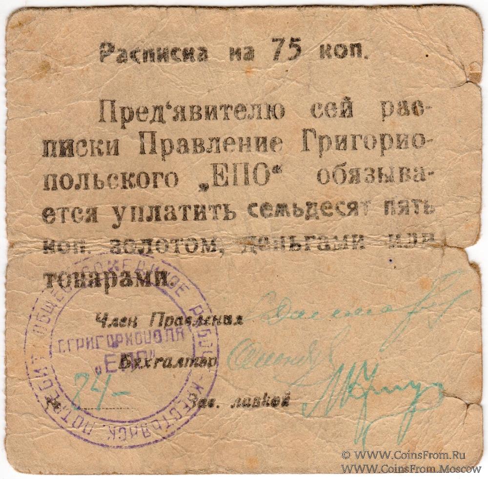 Печать круглая: "Г.ГРИГОРИОПОЛЯ "ЕПО"" (по центру в две строки) / "ЕДИНОЕ РАБОЧЕ-КРЕСТЬЯНСК. ПОТРЕБИТ. ОБЩЕСТВО *" (по кругу).