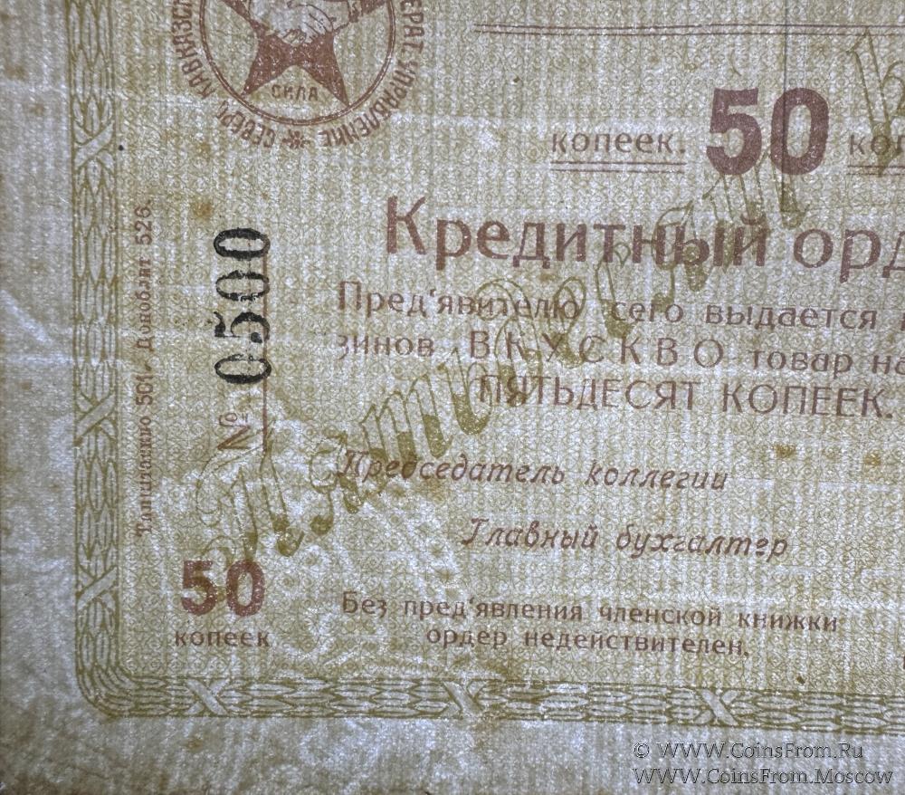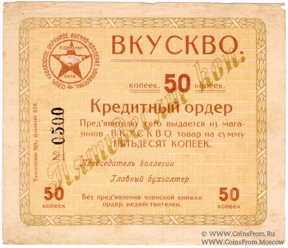 Кредитный ордер без даты. Бланк. Элементы водяного знака. Северо-Кавказское Окружное Военно-Кооперативное Управление (ВКУ СКВО).