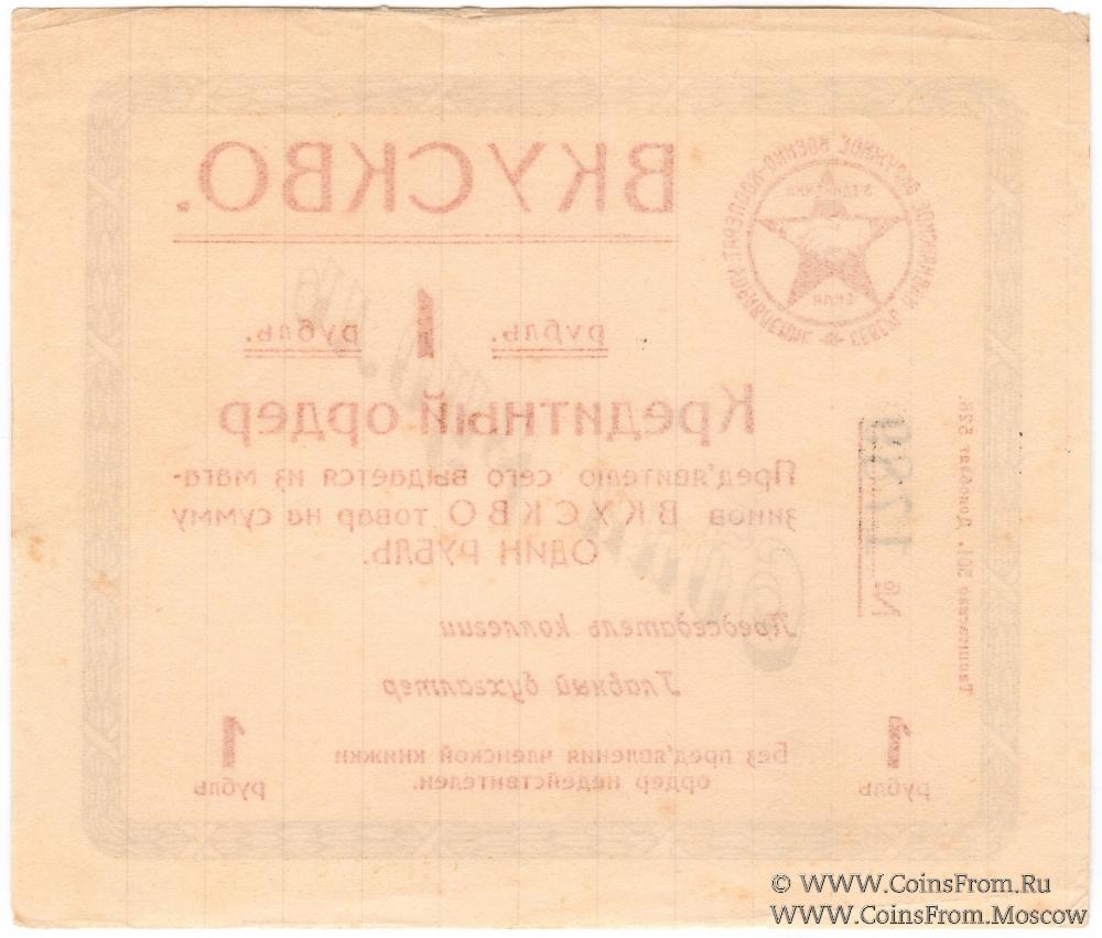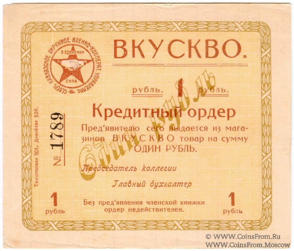 Кредитный ордер без даты. Бланк. Элементы водяного знака. Северо-Кавказское Окружное Военно-Кооперативное Управление (ВКУ СКВО).