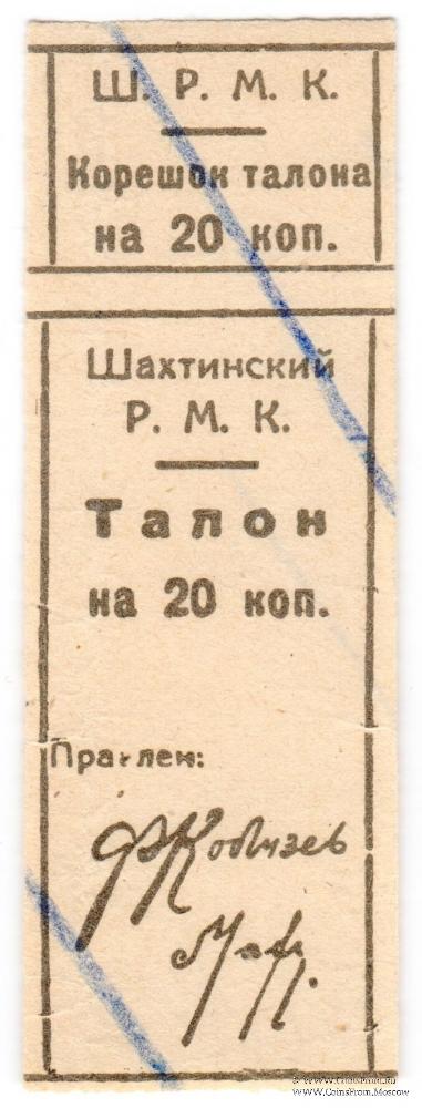 Талон без даты. Бумага белая. Шахтинский Рабочий Многолавочный Кооператив (Р.М.К.).