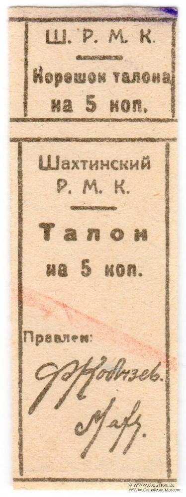 Талон без даты. Бумага белая. Шахтинский Рабочий Многолавочный Кооператив (Р.М.К.).