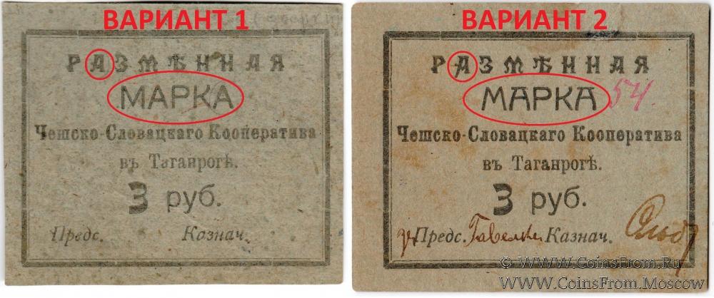 Разменная марка. Серый оттенок бумаги. Вариант 2 (шрифт слова "МАРКА"). Абкляч букв "аз" на реверсе. Чешско-Словацкий Кооператив в Таганроге.