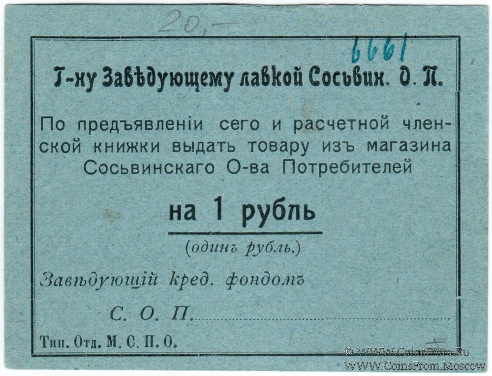 Без названия (По предъявленiи сего). Г-ну Заведующему лавкой Сосьвинского О.П. Сосьвинское Общество потребителей.