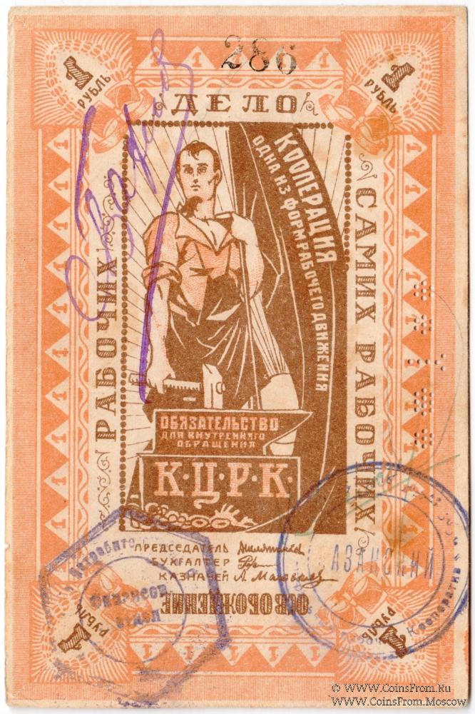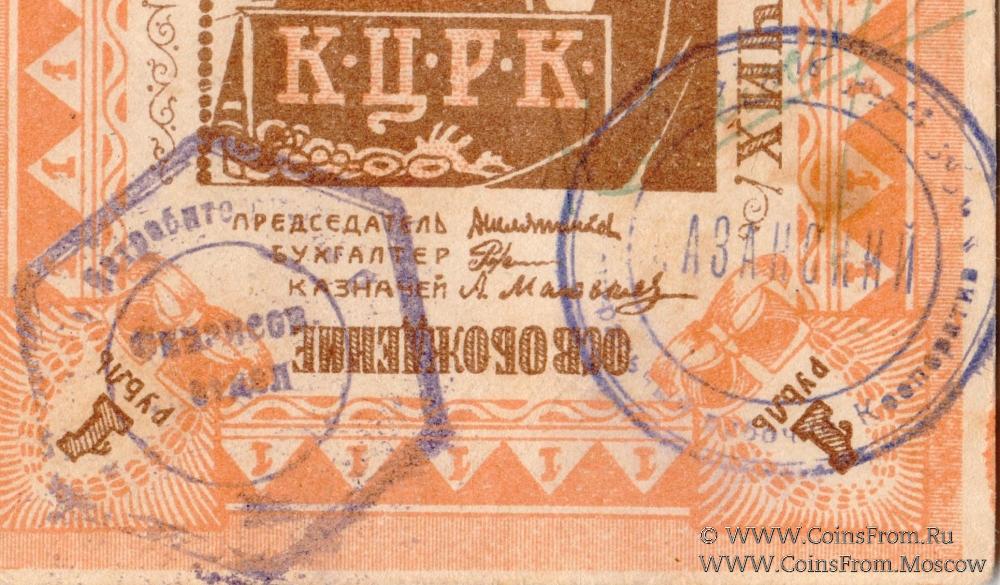 Обязательство для внутреннего обращения с печатью Потребительского общества на обязательствах Казанский Центральный рабочий Кооператив (К.Ц.Р.К.).