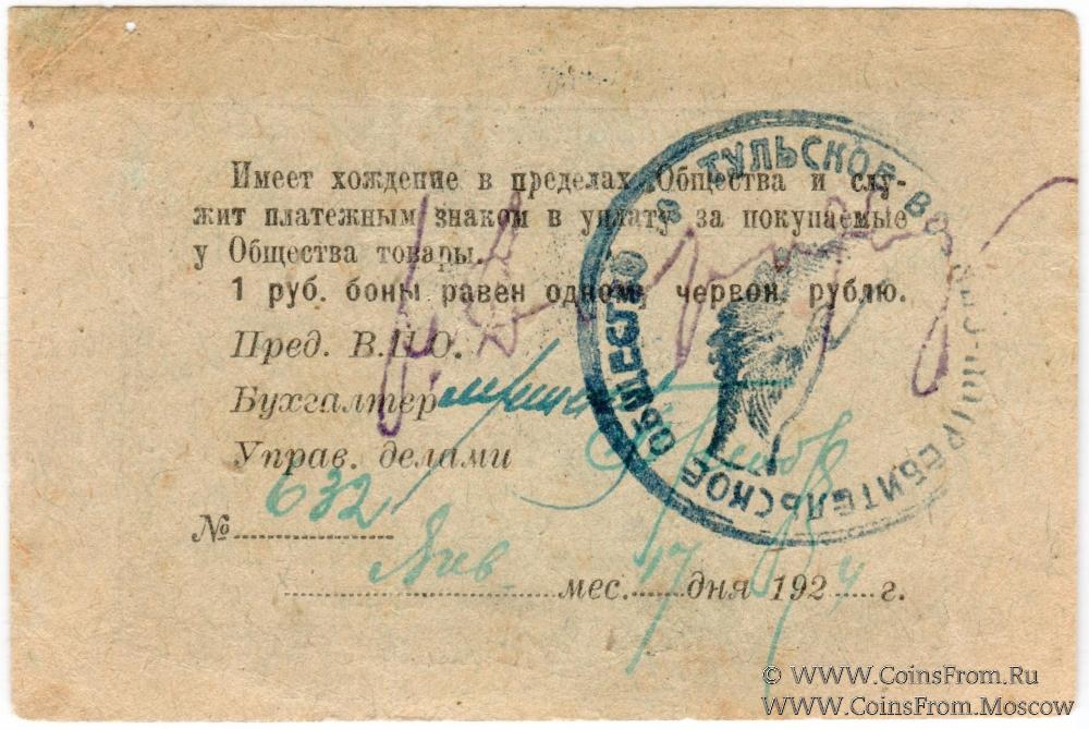 Бона. Законченная (полный комплект подписей и номер). Тульское Военно-Потребительское Общество.