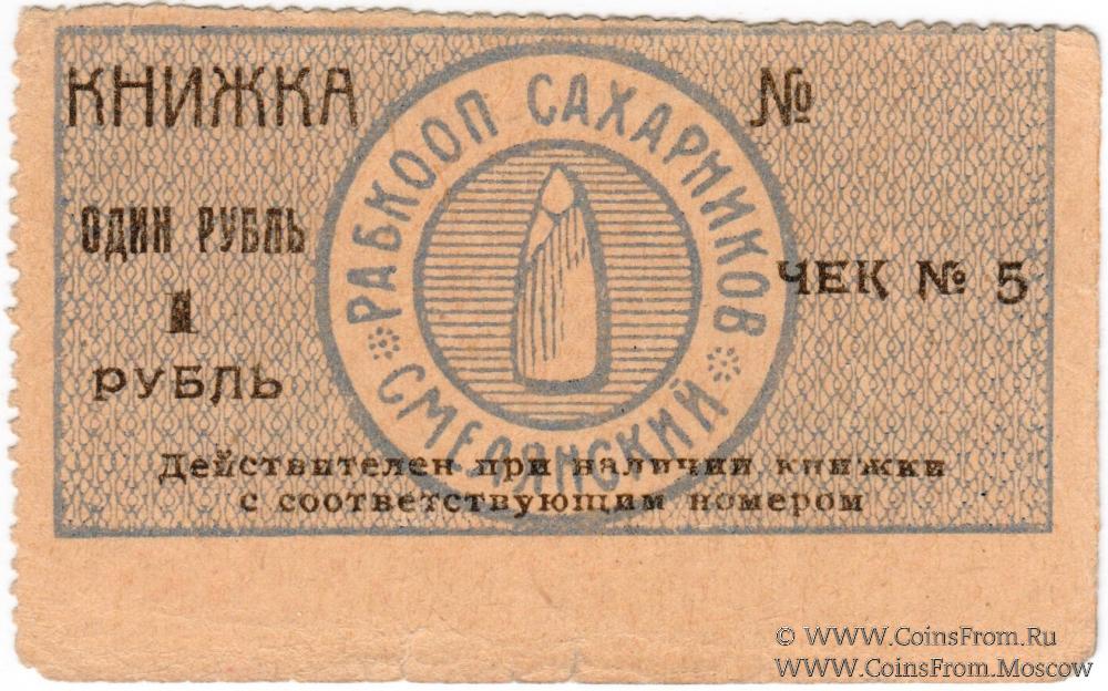 Без названия. Чек № 5. Без номера. Рабочий кооператив сахарников Смелянский.