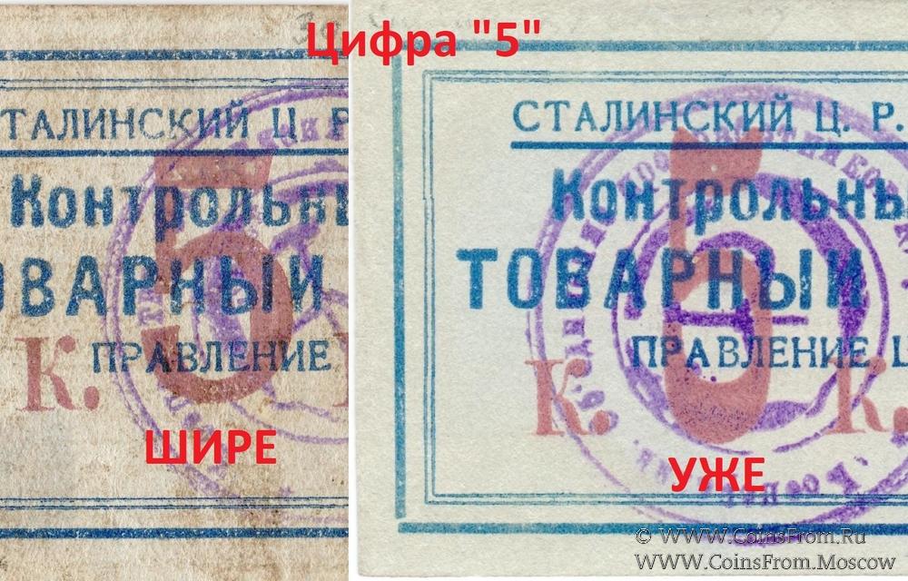 Контрольный товарный чек без даты. Печать 3 типа. Без перфорации. Цифра "5" широкая. Сталинский Ц.Р.К.