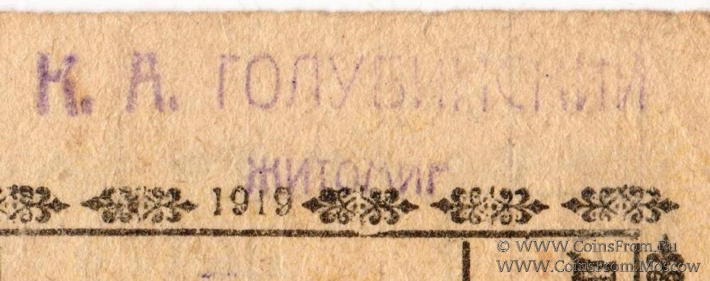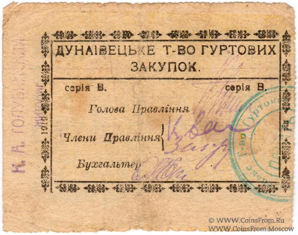 Расписка без даты (1919 г.). Серия В. Штамп на реверсе. Дунаевецкое товарищество оптовых закупок (Дунаївецьке т-во гуртових закупок).