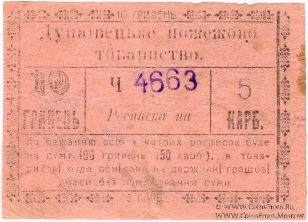 10 гривен (5 карбованцев) 1919 г. (Дунаевцы)