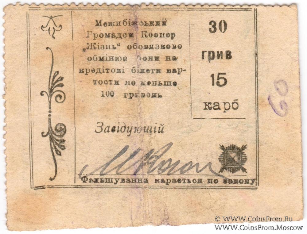 30 гривен (15 карбованцев) б/д (Меджибож)