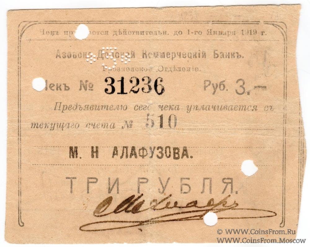 Чек 1918 г. Действителен до 1 января 1919 г.