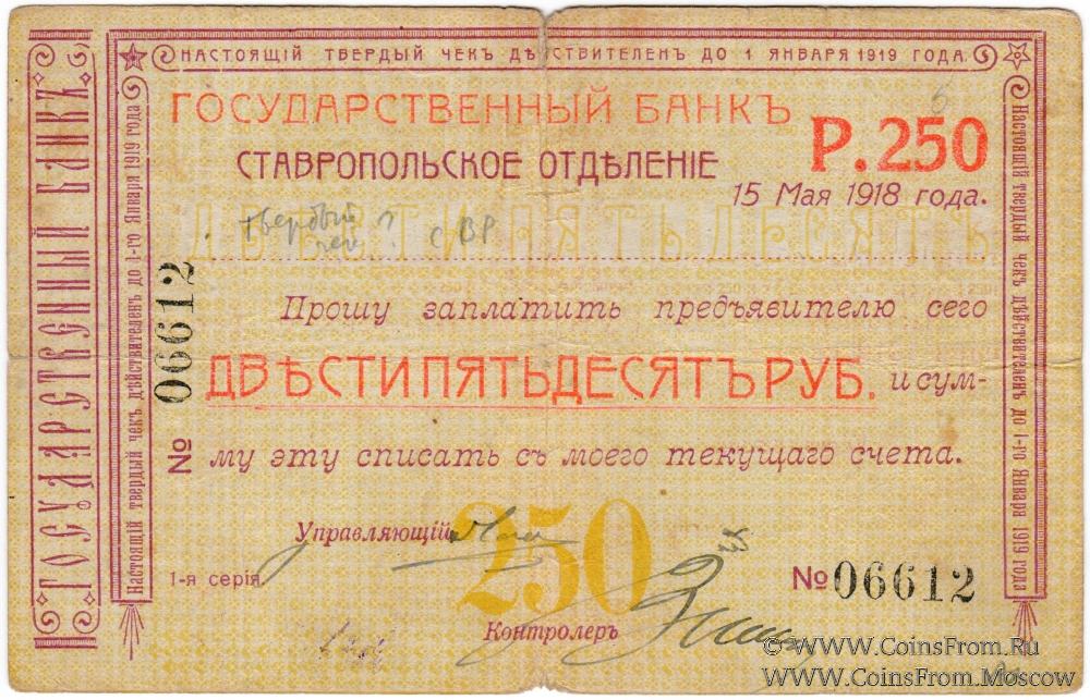 Чек гарантированный (обеспеченный) от 15 мая 1918 г.