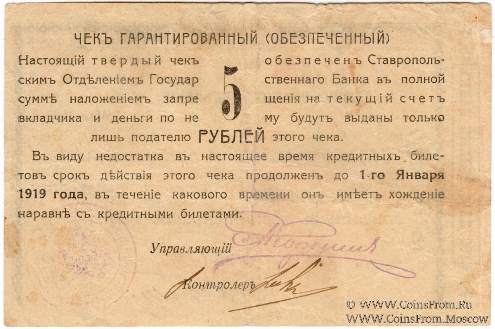 Чек 5 рублей 1918 г. (Ставрополь)
