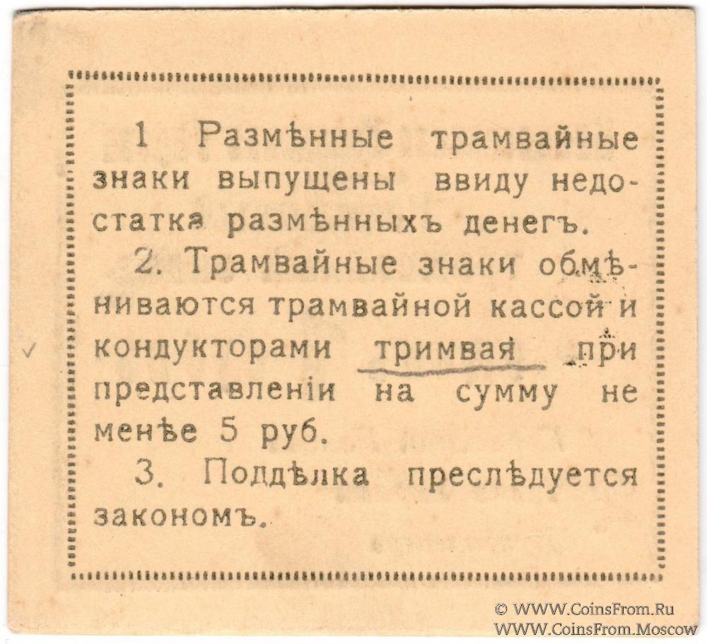 Разменный трамвайный знак 1918 г. БРАК: на реверсе в слове "трамвая" буква "и" вместо "а" ("тримвая"). Николаевская Городская Управа.