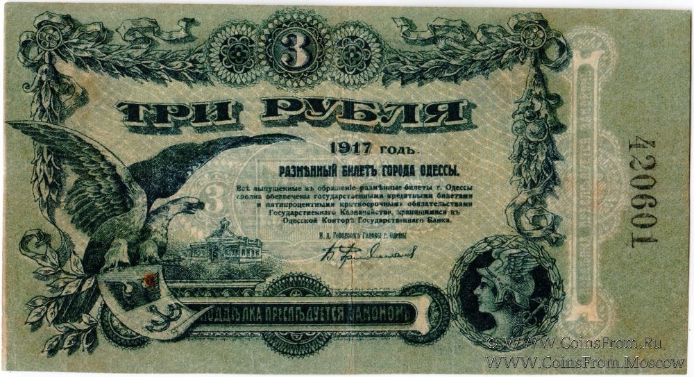 Разменный билет г. Одессы 1917 г. Номер черный без литеры серии. Городское Самоуправление.
