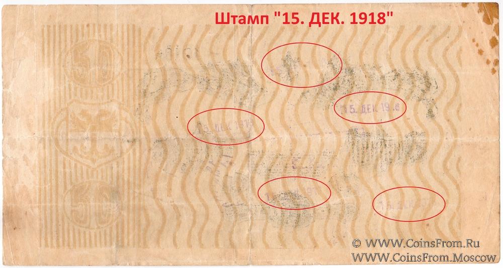 Разменный билет г. Одессы 1918 г. Без номера, без серии. ПРОБА печати (недопечатка). Штамп "15. ДЕК. 1918" на аверсе. Городское Самоуправление.
