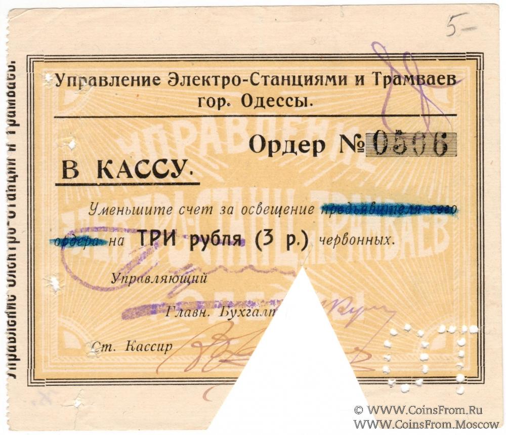 Ордер без даты (1923 г.) в червонном исчислении. Гашение. Перфорация "ОТ". Управление Электро-Станциями и Трамваев гор. Одессы.
