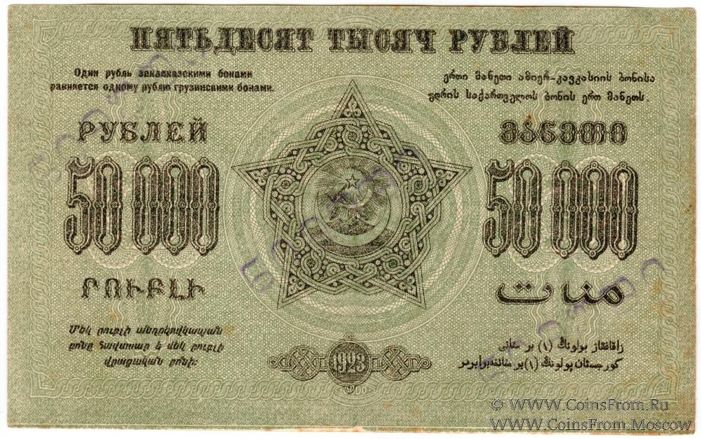 Денежный знак 1923 г. 3-й выпуск. Односторонний оттиск реверса.
