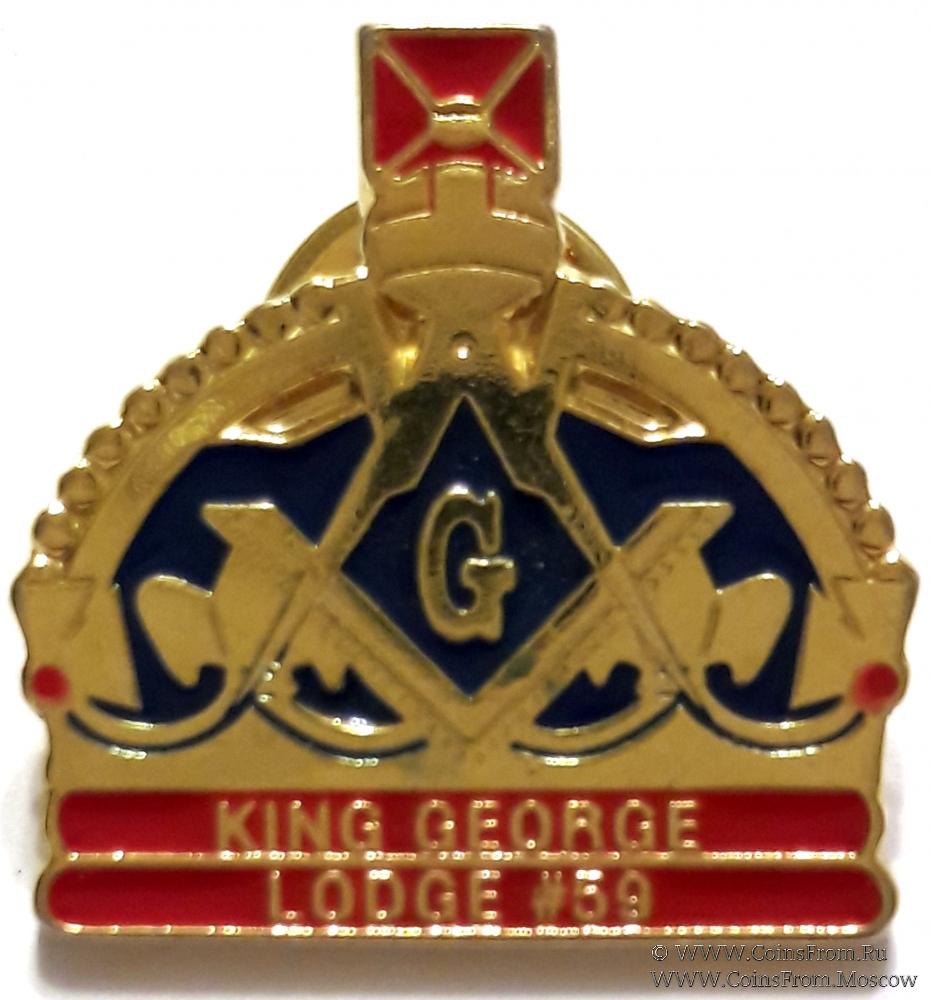 Значок Ложи с масонской символикой. В нижней части на красном фоне наименование и номер Ложи
