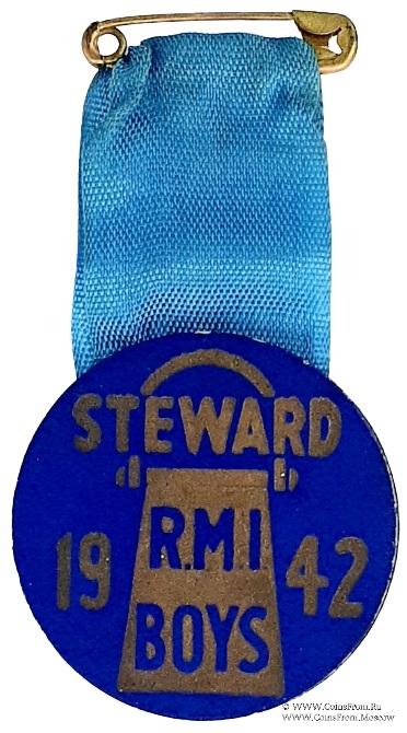АВЕРС: круг синего цвета с изображением «замкового» камня и надписью Steward RMI Boys1942.