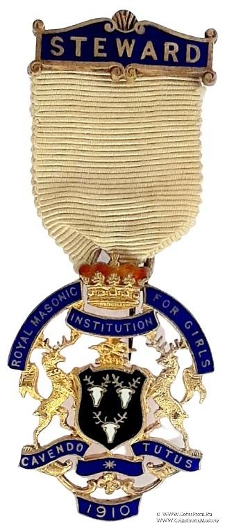 Знак RMIG 1910. STEWARD ROYAL MASONIC INSTITUTION FOR GIRLS – Королевский Масонский институт для девочек.