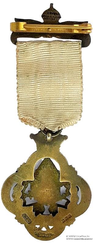 КОЛОДКИ/МЕДАЛЬОН: верхняя колодка в форме витой сине-белой ленты с надписью steward и даты 1928. Верх колодки увенчан короной.