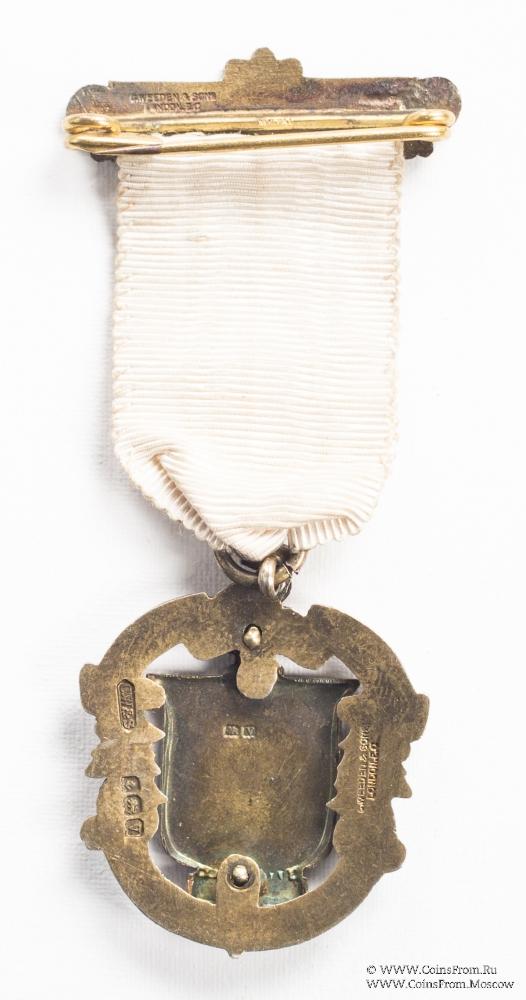 Цвет ленты белый. Колодка с орнаментами по бокам и трилистником сверху синей эмали с надписью STEWARD и булавкой для ношения с обратной стороны. В низу лента непосредственно, без металлической колодки, соединена с кольцом знака.