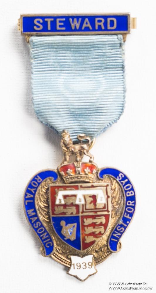 Знак RMIB 1939. STEWARD ROYAL MASONIC INSTITUTION FOR BOYS. – Королевский Масонский институт для мальчиков.