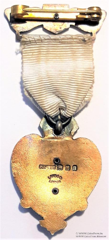 Цвет ленты белый. Колодка бело-зелёной (цвет флага Уэльса) эмали с надписью STEWARD, датой 1922 и булавкой для ношения с обратной стороны. в центре колодки малый герб, в виде щита с изображением красного дракона – символ Уэльса. Уэльс - Страна, одна из четырёх главных административно-политических частей Соединённого Королевства Великобритании и Северной Ирландии.