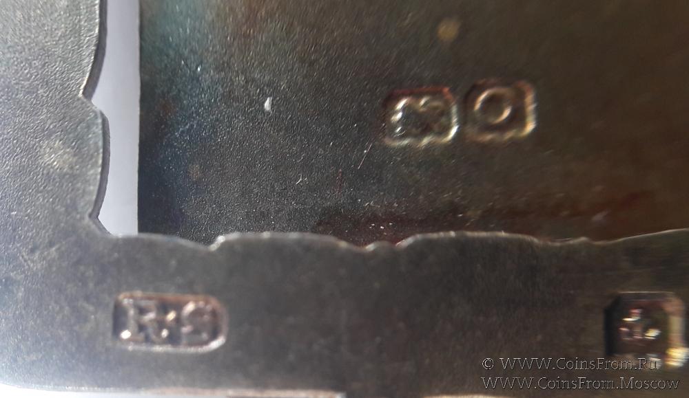Знак квадратной формы. Квадрат, образованный венком, в центре вверху которого корона красной эмали. На венке накладной малый герб Великой Ложи Англии в виде щита, с резными буквами RMIG над ним.