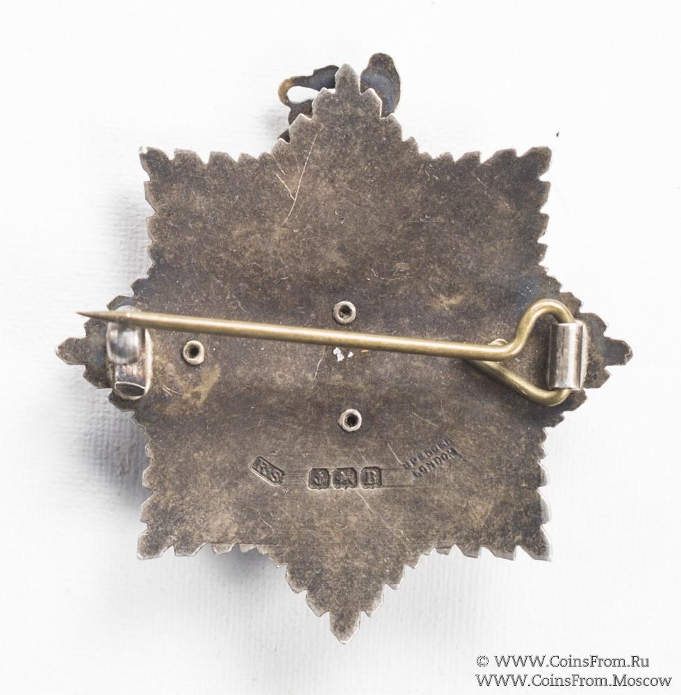 Знак в виде восьмиконечной звезды. На синей подвязке из ремня надпись RMIG 1927 и ICH DIN – я служу - девиз Принца Уэльского.